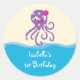 Very cute and colourful favour sticker ideal for a girl's birthday. Features an octopus in vibrant colours and pattern. Great for sea, ocean or beach theme parties and events. Use it to seal envelopes or party favours.