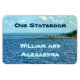 The blues and aquas of the sea and sky and the edge of a small island are the background for this magnet that you can customise with your name and cruise information for your family or group cruise. It's a view of the sea from a cruise ship. Use for a stateroom door marker and have a neat souvenir afterwards.