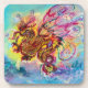 Colorful ,whimsical,vibrant watercolor painting in aqua blue,turquase,teal,red,gold yellow,pink,fuchsia colors ,golden and silver foil by Bulgan Lumini (c) 2009 .Chinese dragons traditionally symbolize potent and auspicious powers, particularly control over rain,water. The dragon is also a symbol of power, strength, and good luck,immortality and heroism.