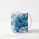 Colourful blue, sea green, teal and white abstract fantasy design of sea waves with foam.