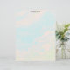 Blue and very pale green serve as a background for off-white clouds resembling foam on seawater on this beautiful, marbled letterhead stationery.