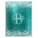Sea Foam Green Glitter Aqua Teal Foil Monogram Notebook