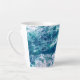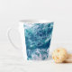 Colourful blue, sea green, teal and white abstract fantasy design of sea waves with foam.