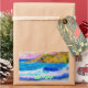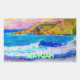 beautiful laguna beach cliffs and sand dunes also splashing waves with "seafoam" slogan from original art !