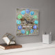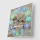 Add your name to personalise this coastal clock, with colourful pieces of sea glass in hues of blue aqua and green to mark the hours, and assorted sea shells nestled in beach sand in the background.