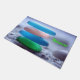 This custom doormat for the home or office features a close-up image of colourful sea glass stacked vertically in the sand. "Welcome" is added in cursive lettering in a shade of green to match. The mat measures 24" x 36" and has a smooth felt front and nonslip latex back. It also has a reinforced edge to resist fraying, is both fade & mildew resistant, and cleans easily with a spray of water. Ideal for covered entryways such as porches, apartments, offices, condos, etc. Feel free to contact me through Zazzle if you have questions about this mat or would like help transferring this design to a different item. I'm happy to help to ensure the design fits correctly.