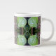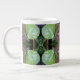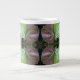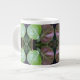 The pattern on this Giant Mug, in natural shades of greens, muted purples and a hint of light blue, was made from an original photograph of sea grapes growing along the beach. The photo is a closeup showing two of the almost round leaves, one of which is still a bright yellow-green, and the other is becoming a reddish purple as the winter season approaches.