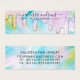 This girly and glamourous small earring/hoop earring display card is the perfect way to stylise your packaging and add your own personal flair and personality. It features faux printed sparkly mermaid and sea green colour thick glitter drips on top of aqua, blue, and sea green holographic iridescent background. The typography is an elegant cursive script with a modern serif font to match. The colour scheme includes aqua, white, blue, yellow, and green It's chic, pretty, unique, and luxurious; the perfect way to advertise your business and stylise your marketing and advertisement material for your customers. (earring holes are printed markers only, puncturing must be completed by the customer)