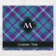 Sea green, purple and blue tartan design. Seamless pattern. Custom text and monogram.