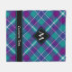 Sea green, purple and blue tartan design. Seamless pattern. Custom text and monogram.