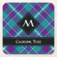 Sea Green, Purple and Blue Tartan Square Paper Coaster