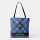 Sea green, purple and blue tartan design. Seamless pattern. Custom text and monogram.