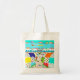 Colourful Sea Isle City, NJ Budget Tote Bag. Design includes Sea Isle gazebo landmark, starfish, turtles, salt water taffy, shells and much more! Tote bag created from local artist, Chris Ambrose's original acrylic painting.
