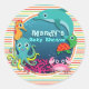 Sea Life Baby Shower, Bright Rainbow Stripes Classic Round Sticker