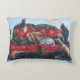 The cushion is small to medium sized. It can be washed. It is well constructed. The material used is pleasant and feels decent quality. It has a very slight plush feel which is good. It is well labelled and its care clearly stated. Theres nothing not to like about it. All in all a good item. The deduction of one star overall is due to long delays in delivery to the UK. It's not clear if this was due to Zazzle or somewhere else in the chain as I did not receive status updates of dispatch or progress. I cannot comment anymore on that other than to say that was our experience but it may not be the same for you. The printing was surprisingly close to what we were expecting. Its an art piece and on material so its hard to assess the precision of printing but it seems close to the original. The soft lines are reproductions of the original. The colour is a fair reflection of the painting. This was printed in the US and it looks like US quality. No issues.