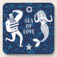 Sea cartoon illustration with sailor and mermaid in love on fish background | © and ® Bigstock® - All Rights Reserved.