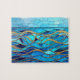 Sea of Waves Blue and Gold Mosaic Art Jigsaw Puzzle
