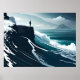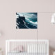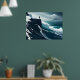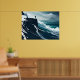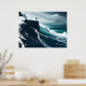 sea painting big wave storm dark night cliff beach poster