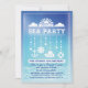 This nautical theme invitation is perfect for a summer birthday party, as a boating invitation, cruising invitation and more. The words "Sea Party" are pre-printed.