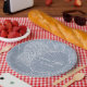 Ocean wedding nautical beach dusty blue white seashells coastal elegant beautiful design paper round plates. Image copyright Marg Seregelyi Photography.