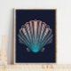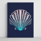 Modern seashell wall art with a clean line illustration on a bold navy background. This sea shell print adds a simple coastal touch to bathrooms, beach house spaces, and ocean themed rooms. Display it alone or pair it with the matching Sea Creatures set to build a cohesive gallery wall with coordinating ocean animals.
