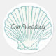 Lovely beach wedding envelope seal, with a aquamarine lined sea shell against a white background. Our Wedding, in black script text across the middle is customisable to read anything you want. Matching Summer beach wedding products available.