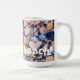 In the original artwork on this Mug, sea shells and pebbles, colourful bits and pieces worn smooth by the sea, are washed up on the beach as the tide goes out. The natural patterns they form are endless. There’s even a heart shaped white rock. The text reads “Work’s a beach!”, but is set for you to personalise or delete if you prefer.