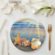 Sea shells and starfish on beach paper plate