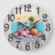 A Beautiful Large Wood Simulated Textured Numbered Clock With A Seashell And Starfish Theme