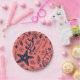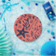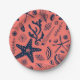 Hand - drawn pattern made of underwater creatures and seaweeds on living coral colour background.