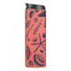 Hand - drawn pattern made of underwater creatures and seaweeds on living coral colour background.