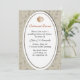 Elegant beach theme wedding rehearsal dinner invitation done in sand colour with a darker coloured sea life pattern. A white with tan accent decorative oval shaped text area, on the front of the invitation has a lone sea shell at the top. The rust and black coloured text is ready to personalise for your wedding rehearsal dinner.
