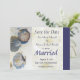 Beautiful water colour sea shells adorn this tasteful wedding save the date announcement. Fonts are blue tones for an added effect. Customise to your liking by changing the font colours and or styles.