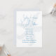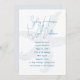 Modern and simple, wedding invitation with a sea theme. White paper with sea blue text. Large script is used for the names of the bride and groom at the top of 5x7 inch paper with a big starfish / sea star background image. All ceremony text is added in paragraph form to easily personalise for your event. Reverse is solid pale grey-blue. Also, download to share digitally if you prefer.