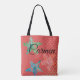 Sea Stars, Star Fish and Dots - Seaside Tote bag - A great summery design with sea stars and dots. The handmade look of the prints give this a real cool vibe. Colours in orange, yellow, red and purple. The back side of the tote can be customised with your name or any text that you prefer.