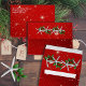 Red Christmas envelopes with starfish and return address template. Made to match our Christmas cards, the envelope flap and inside are decorated with white sea stars and green holly images. The entire linen envelope is red with twinkling stars.