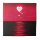 Sea Sunset Love Heart Ceramic Tile - Black Red