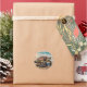 Coastal themed stickers with an illustration of a mama sea turtle and baby crawling into the blue ocean waves on a sandy beach.