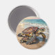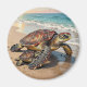 Sea Turtle and Baby on Beach Illustration Magnet