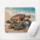Sea Turtle and Baby on Beach Illustration Mouse Mat
