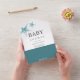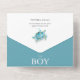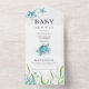 This all in one tropical baby shower invitation features a boarder of my original watercolor sea turtle starfish, seaweed and sea coral in shades of blues, greens and turquoise. The card features a detachable diaper raffle card. A beach choice for your ocean themed baby shower. To see my entire stationery suite and more budget invitations visit DoTellABelle on Zazzle.