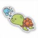 Cute cut sticker of a baby sea turtle swimming through the ocean near the beach.