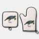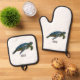 Sea turtle cartoon illustration oven mitt & pot holder set