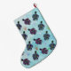 Graphic illustration of colourful Sea Turtles in the ocean. Brighten up the holiday season with this sea life design. You can customise this stocking with name or message. Pattern of sea turtles on back!