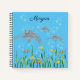 A colourful and cute pen and ink illustration of a group of friendly sea turtles with blue bubbles adorns this fun and functional square spiral notebook. Personalise it with your name or title!