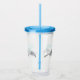 A colourful and cute pen and ink illustration of two friendly sea turtles with blue bubbles adorns this fun and functional acrylic tumbler.