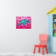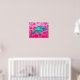 An endangered sea turtle painted in ocean blues and greens with a pink background of pink Hawaiian Honu Sea Turtles with pink hibiscus flowers. The Hawaiian Sea Turtle is a symbol of peace, good luck, and the spirit within. It is based on the Hawaiian legend of Kauila, a green sea turtle that could change into a girl and watch over the children of Hawaii.