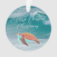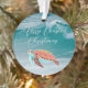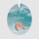 Illustrated sea turtle ornament with text to add to both sides. An ocean wave is the background image. Use to promote sea turtle rescue or advertise a good cause.