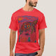 I give wanted to give this a 4 instead of a 5 because these Basic DARK T0shirts run unexpectedly SLIM or Narrow. Which is great if you do not have a potbelly, but I have a paunch. It isn't the shirt's fault that I've got a beer belly. The design and shirt itself is a quality cotton shirt. The color is more of a deep purple, but still a very pretty color. The Basic DARK T-shirts run a bit SLIMMER than the Basic Ts. The neck is a fraction narrower (or seems to be narrower) also. I'm a paunchy middle-aged woman and my neck is 12 inches (31cm) thick and the neckline fell about the same as in the photo of the man, and I had the desire to tug it a bit. So if you're a thick necked man or like loose shirts, be aware these are slimmer shirts. Once I get rid of my lockdown paunch it'll look great. The shirt washed well in cold water with no apparent bleeding. We don't have a dryer, so it hung dry. Did not shrink. Love the colors and the design. The design looks smaller on my shirt than it does on the model on-line. But still, it looks good on the shirt. The printing looks as it does on the model, just the size seems fractionally smaller. Washed garment in cold water, hung dry and design appeared unaffected.