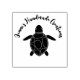 Customisable "made by" rubber stamp features sea turtle silhouette and modern curved script text.